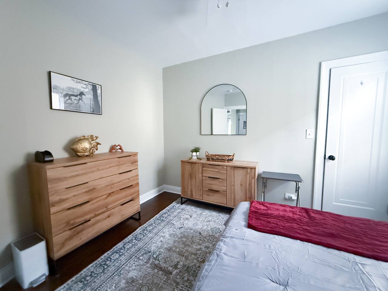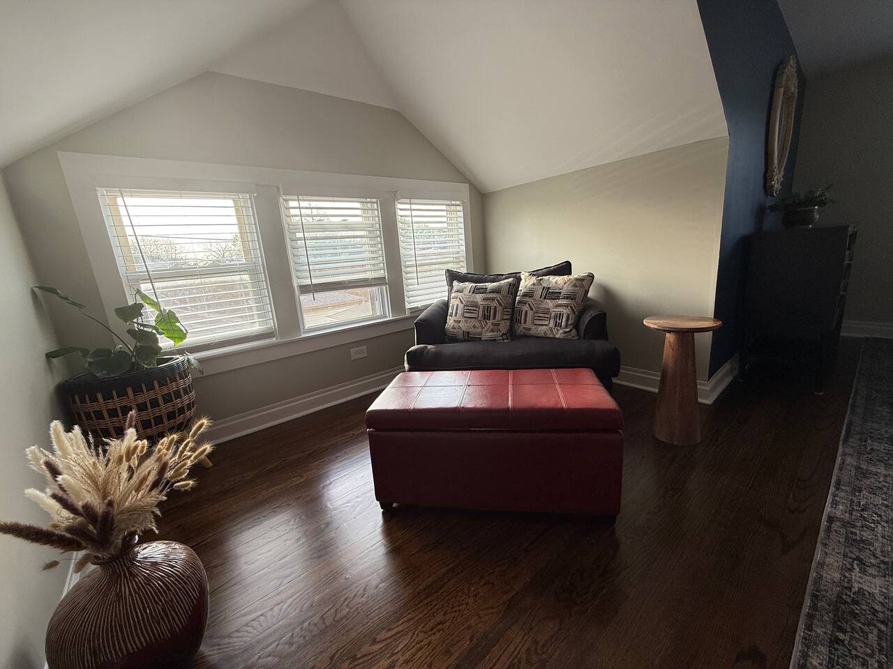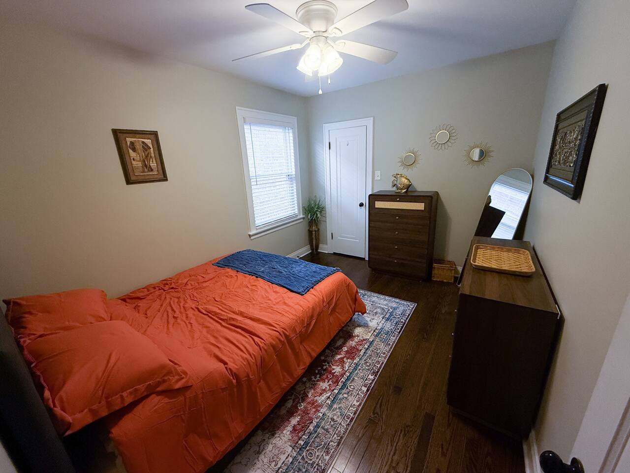 Welcome to Your Stylish Home Away from Home! Step into comfort and style in this beautifully curated retreat, perfect for families, friends, or work trips. Our homey yet chic living room offers a cozy space to relax, complete with comfortable seating and tasteful, modern décor — ideal for movie nights or lounging after a day of exploring. Enjoy meals in our modern, slick dining room, designed for both style and functionality. It’s the perfect spot for memorable dinners or casual breakfasts before heading out for the day. The main floor features two uniquely styled bedrooms, each equipped with a plush queen-sized bed to ensure a restful night’s sleep. There’s also a versatile office room, thoughtfully designed for remote work, which includes a futon styled bed for extra guests. Our bright, lively kitchen overlooks the backyard and side streets, offering lots of natural light and a vibrant atmosphere for whipping up anything from a quick snack to a gourmet meal. Head upstairs to find the master bedroom (queen size bed), a private sanctuary featuring a luxurious en-suite bathroom for your convenience. Also on the second floor, you’ll find a fully equipped laundry room, making longer stays a breeze. But that’s not all — the second floor also boasts a one-of-a-kind game room, a dynamic space perfect for entertainment, fun, and meaningful conversations. Whether you’re up for a board game, a spirited match, or just some relaxed time with friends, this space is ready to host your best memories. Important Information Before Booking Our home is stocked with everything you need for a comfortable stay — including kitchen utensils, pots, pans, wine and water glasses, and basic spices (salt, pepper, and a few extras). We also provide a coffee maker, dry cream, and sweeteners. If you run out during your stay, please let us know so we can restock for the next guest. You’ll just need to pick up your own groceries and any extra coffee supplies you may want! The garden unit floor is a separate unit/ entrance and not part of the guest space. Be mindful of noise level. House Rules When booking, you are agreeing to the following: • Guest Count: Please accurately list the number of guests staying. No additional overnight guests without prior approval. • Age Requirement: Guests must be at least 25 years old to book, or accompanied by an adult guardian. • No Smoking, No Parties: No large gatherings, parties, or unapproved visitors are allowed. • Noise Policy: Respect quiet hours from 10 PM to 7 AM. Please be mindful of neighbors at all times. • No Pets: We do not allow pets in the home. • Respect the Home: Please do not eat or drink in the bedrooms or on the beds. • Parking: Two driveway spots are available. There’s also free street parking — overnight parking requires a permit (available upon request). Street cleaning is every Friday. Serious Violations Any criminal activity, excessive noise, unauthorized guests, or damages could result in immediate removal from the property without a refund and additional charges may apply. Guest Communication To maintain the best experience for everyone, we kindly ask that you message us your reason for booking before you instantly book. We currently only accept guests with positive reviews from previous hosts. Quick Reminders • Please keep the back side gate closed to prevent wind damage. • Full access to garage driveway is provided; the garage is locked and off-limits. • Public transportation to Chicago is easily accessible nearby. Thank you for treating our home with respect — we look forward to hosting you!