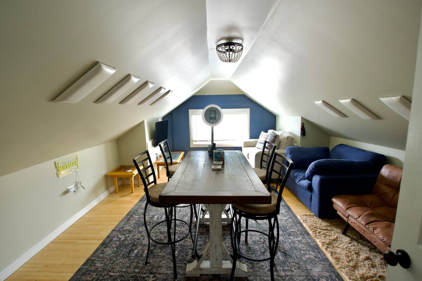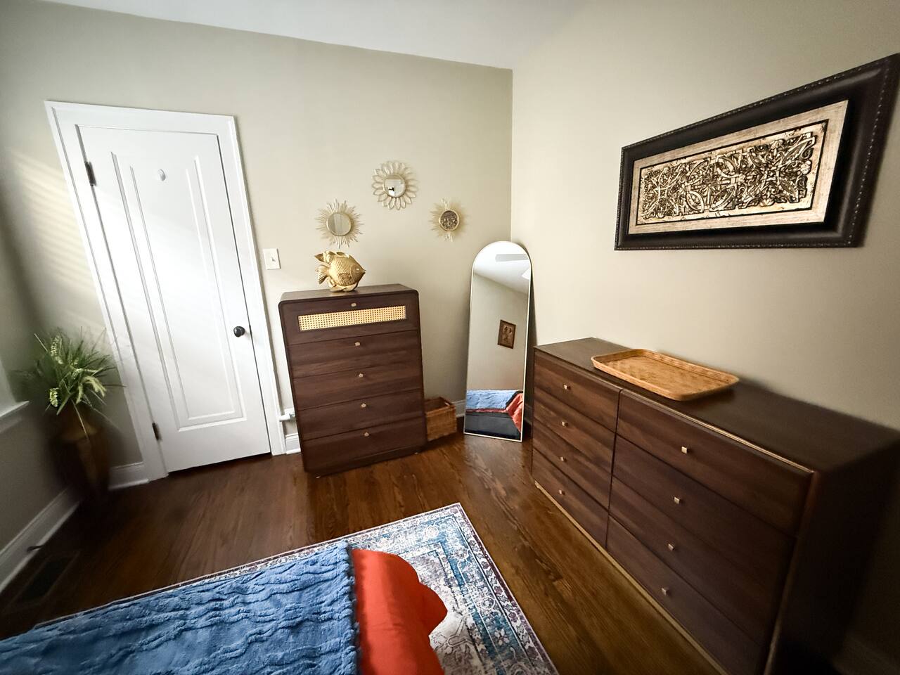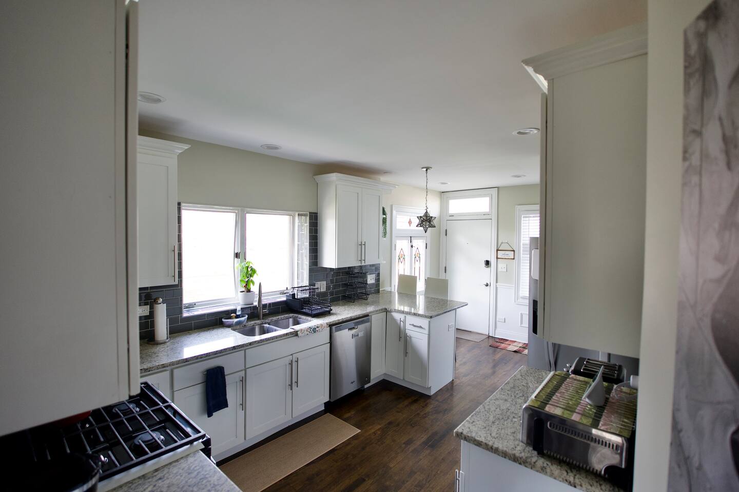 Welcome to Your Stylish Home Away from Home! Step into comfort and style in this beautifully curated retreat, perfect for families, friends, or work trips. Our homey yet chic living room offers a cozy space to relax, complete with comfortable seating and tasteful, modern décor — ideal for movie nights or lounging after a day of exploring. Enjoy meals in our modern, slick dining room, designed for both style and functionality. It’s the perfect spot for memorable dinners or casual breakfasts before heading out for the day. The main floor features two uniquely styled bedrooms, each equipped with a plush queen-sized bed to ensure a restful night’s sleep. There’s also a versatile office room, thoughtfully designed for remote work, which includes a futon styled bed for extra guests. Our bright, lively kitchen overlooks the backyard and side streets, offering lots of natural light and a vibrant atmosphere for whipping up anything from a quick snack to a gourmet meal. Head upstairs to find the master bedroom (queen size bed), a private sanctuary featuring a luxurious en-suite bathroom for your convenience. Also on the second floor, you’ll find a fully equipped laundry room, making longer stays a breeze. But that’s not all — the second floor also boasts a one-of-a-kind game room, a dynamic space perfect for entertainment, fun, and meaningful conversations. Whether you’re up for a board game, a spirited match, or just some relaxed time with friends, this space is ready to host your best memories. Important Information Before Booking Our home is stocked with everything you need for a comfortable stay — including kitchen utensils, pots, pans, wine and water glasses, and basic spices (salt, pepper, and a few extras). We also provide a coffee maker, dry cream, and sweeteners. If you run out during your stay, please let us know so we can restock for the next guest. You’ll just need to pick up your own groceries and any extra coffee supplies you may want! The garden unit floor is a separate unit/ entrance and not part of the guest space. Be mindful of noise level. House Rules When booking, you are agreeing to the following: • Guest Count: Please accurately list the number of guests staying. No additional overnight guests without prior approval. • Age Requirement: Guests must be at least 25 years old to book, or accompanied by an adult guardian. • No Smoking, No Parties: No large gatherings, parties, or unapproved visitors are allowed. • Noise Policy: Respect quiet hours from 10 PM to 7 AM. Please be mindful of neighbors at all times. • No Pets: We do not allow pets in the home. • Respect the Home: Please do not eat or drink in the bedrooms or on the beds. • Parking: Two driveway spots are available. There’s also free street parking — overnight parking requires a permit (available upon request). Street cleaning is every Friday. Serious Violations Any criminal activity, excessive noise, unauthorized guests, or damages could result in immediate removal from the property without a refund and additional charges may apply. Guest Communication To maintain the best experience for everyone, we kindly ask that you message us your reason for booking before you instantly book. We currently only accept guests with positive reviews from previous hosts. Quick Reminders • Please keep the back side gate closed to prevent wind damage. • Full access to garage driveway is provided; the garage is locked and off-limits. • Public transportation to Chicago is easily accessible nearby. Thank you for treating our home with respect — we look forward to hosting you!